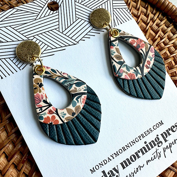 All earrings are made out of paper. They are sealed for water resistance but are NOT waterproof, please treat with care.  MMP is not responsible for water damage. Nickel free hardware.