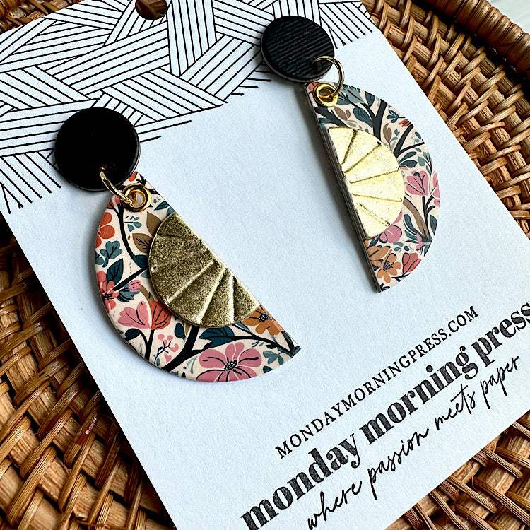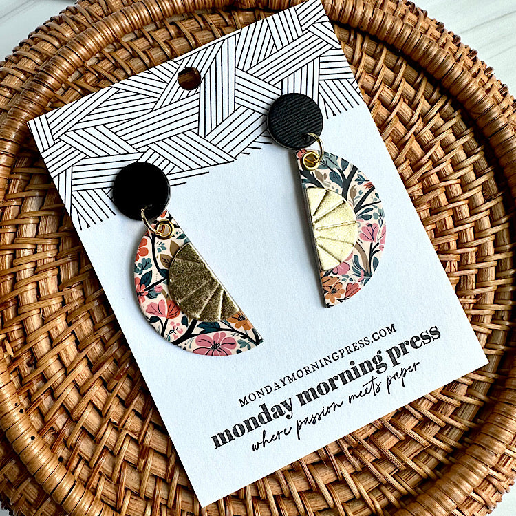 All earrings are made out of paper. They are sealed for water resistance but are NOT waterproof, please treat with care. MMP is not responsible for water damage. Nickel free hardware.
