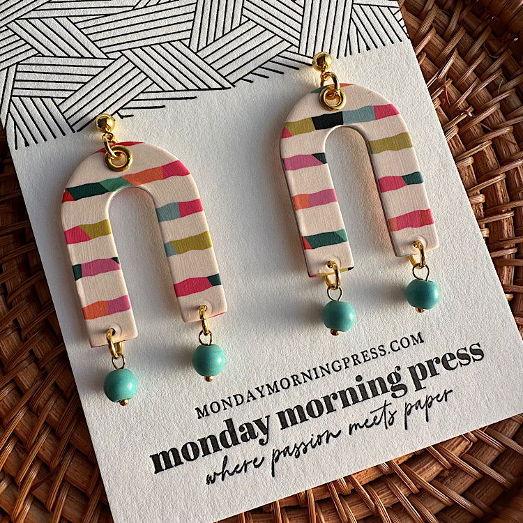 All earrings are made out of paper. They are sealed for water resistance but are NOT waterproof, please treat with care. MMP is not responsible for water damage.