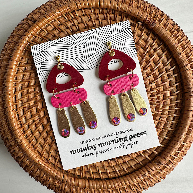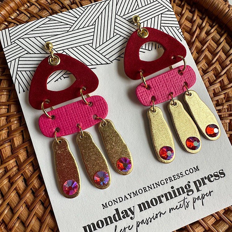 All earrings are made out of paper. They are sealed for water resistance but are NOT waterproof, please treat with care.  MMP is not responsible for water damage.