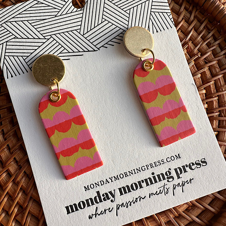 All earrings are made out of paper. They are sealed for water resistance but are NOT waterproof, please treat with care. MMP is not responsible for water damage.