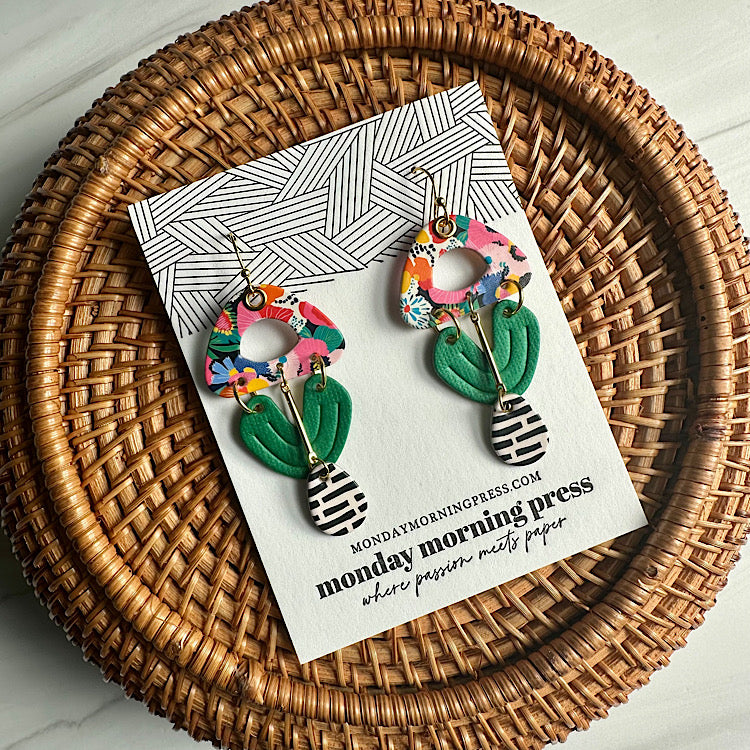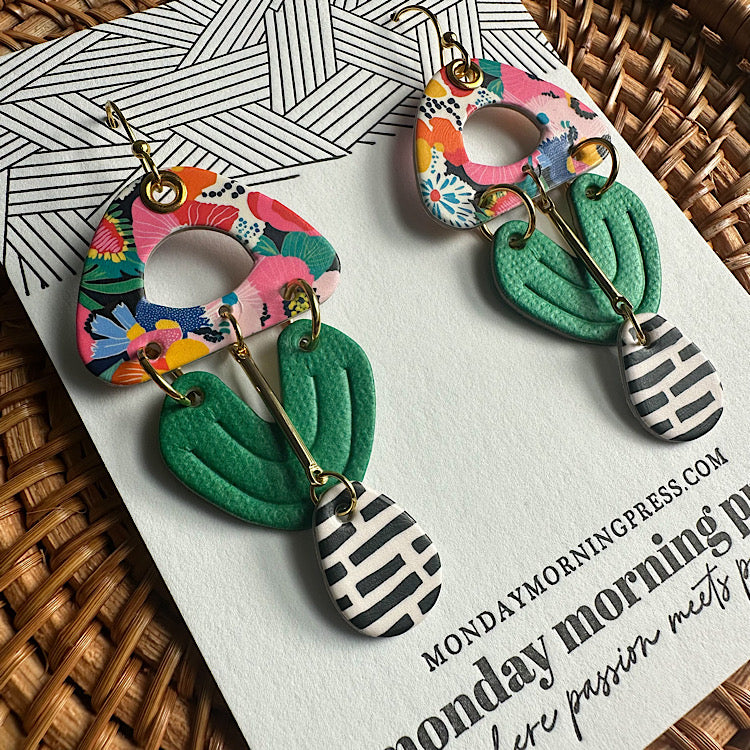 All earrings are made out of paper. They are sealed for water resistance but are NOT waterproof, please treat with care. MMP is not responsible for water damage.