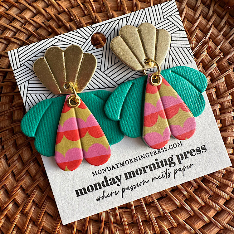 All earrings are made out of paper. They are sealed for water resistance but are NOT waterproof, please treat with care. MMP is not responsible for water damage. Nickel free hardware.