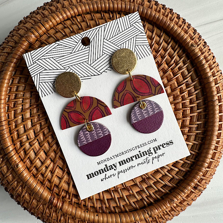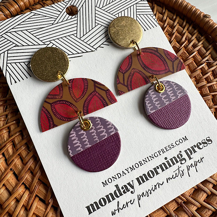 All earrings are made out of paper. They are sealed for water resistance but are NOT waterproof, please treat with care. MMP is not responsible for water damage. Nickel free hardware.