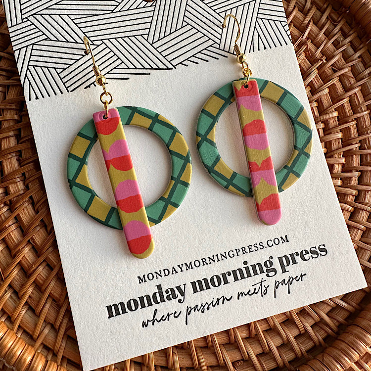 All earrings are made out of paper. They are sealed for water resistance but are NOT waterproof, please treat with care. MMP is not responsible for water damage. Nickel free hardware.