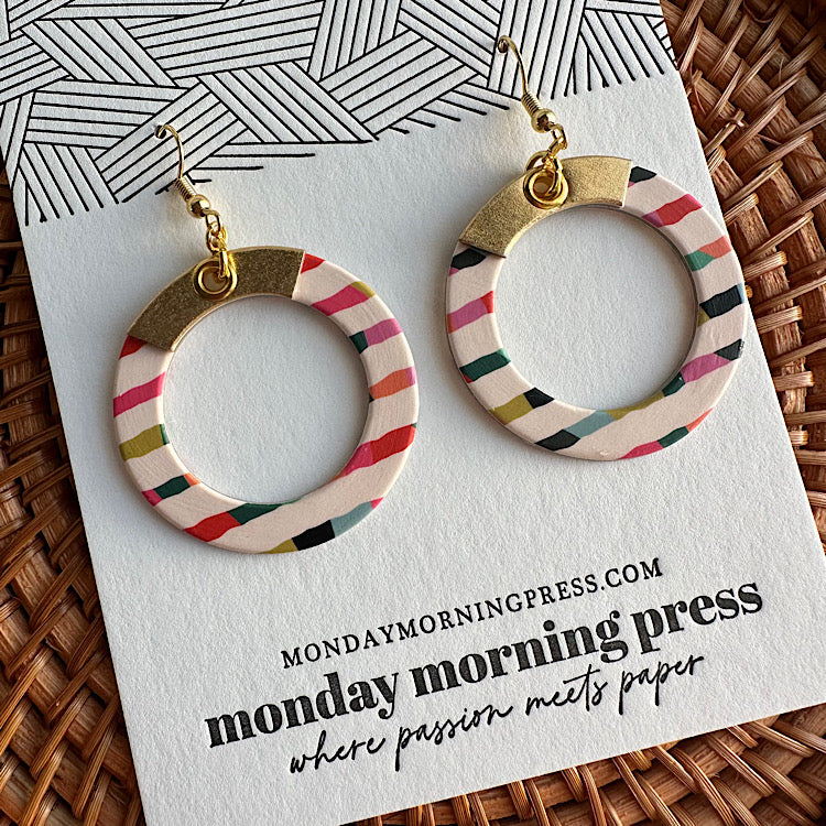 All earrings are made out of paper. They are sealed for water resistance but are NOT waterproof, please treat with care.  MMP is not responsible for water damage. Nickel free hardware.