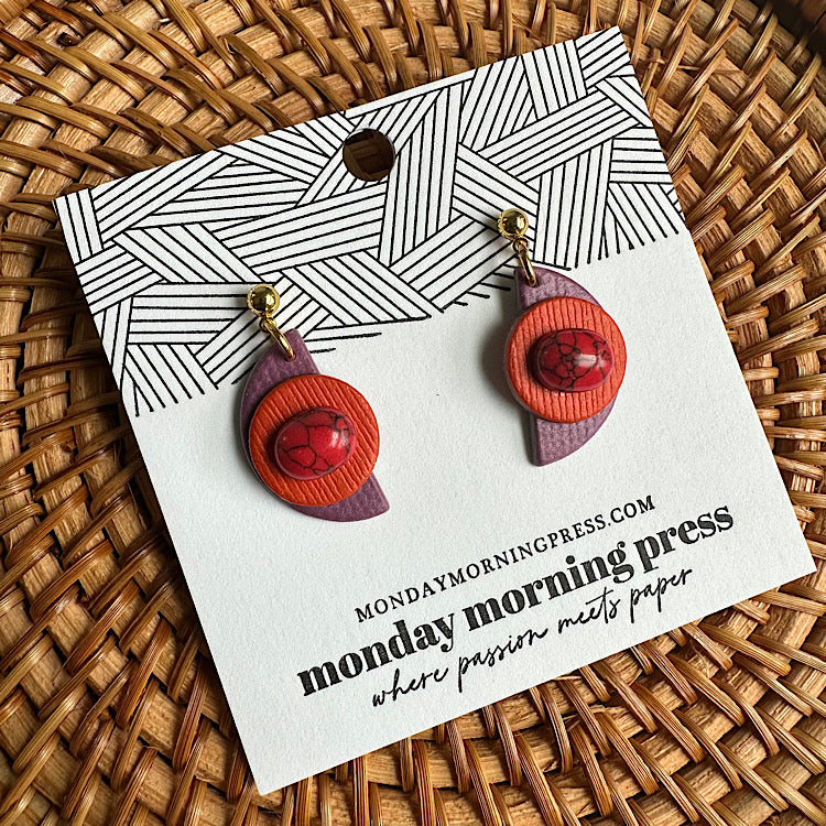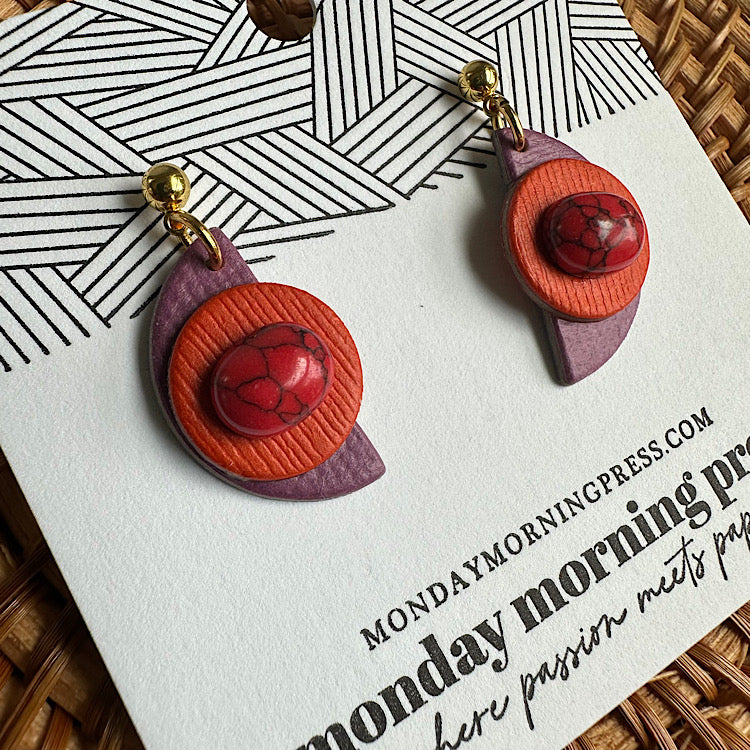 All earrings are made out of paper. They are sealed for water resistance but are NOT waterproof, please treat with care. MMP is not responsible for water damage. Nickel free hardware.