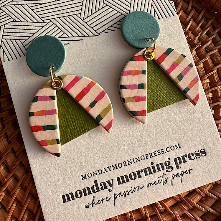 All earrings are made out of paper. They are sealed for water resistance but are NOT waterproof, please treat with care. MMP is not responsible for water damage. Nickel free hardware.