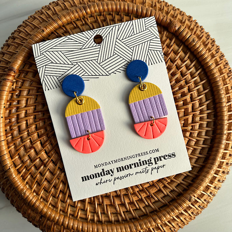All earrings are made out of paper. They are sealed for water resistance but are NOT waterproof, please treat with care. MMP is not responsible for water damage. Nickel free hardware.