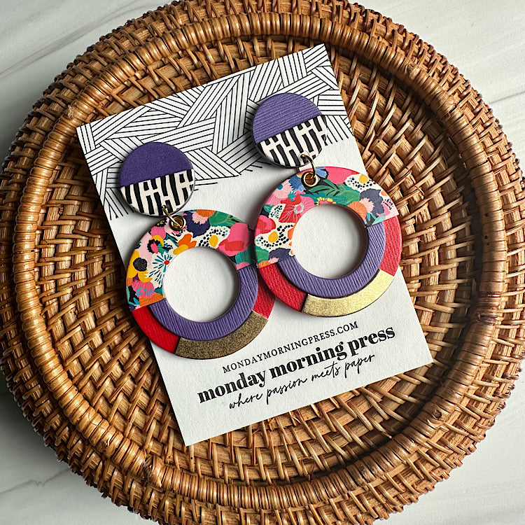 All earrings are made out of paper. They are sealed for water resistance but are NOT waterproof, please treat with care.  MMP is not responsible for water damage.